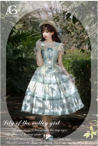 Lolita Wind Chime Girl Suzuran Print Embroidered Fishbone Corset Split Top & Long Tiered Skirt Set by Alice Girl