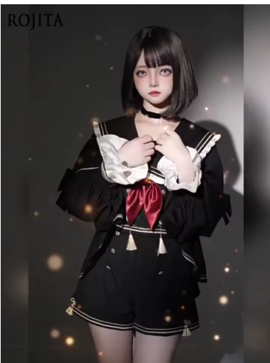 Japanese Skirt Sets Original Lolita Women's Suit Gorgeous Bow Long Sleeve College Sailor Suit + High Waist Shorts +Tassel Beret